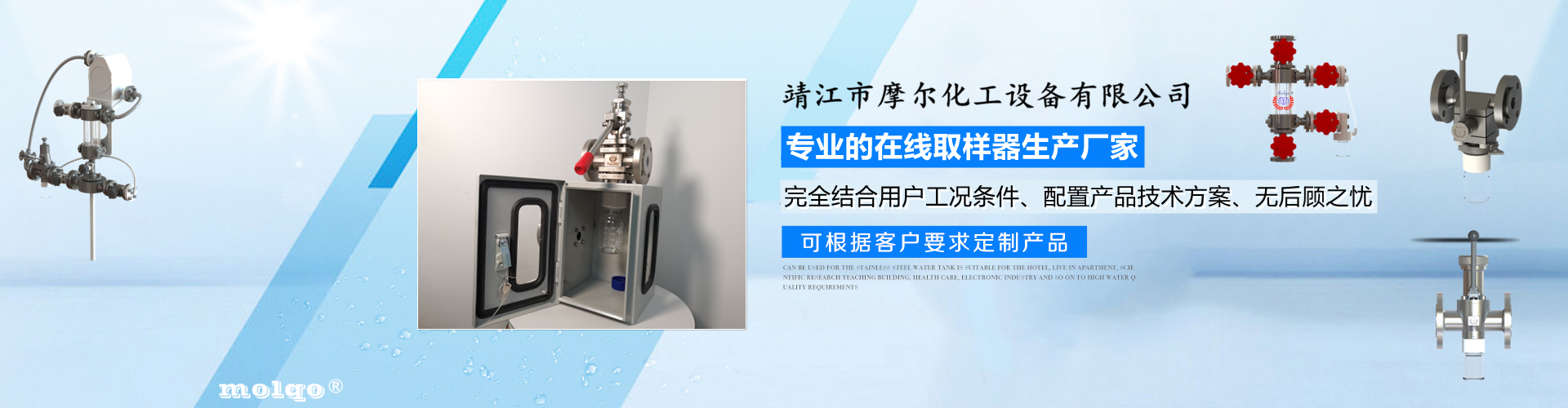 靖江市摩爾化工設備有限公司是一家專業從事反應釜在線取樣器、管道取樣閥、氟塑及搪玻璃襯里防腐設備、管閥的專業生產廠家,咨詢熱線:15061018812!